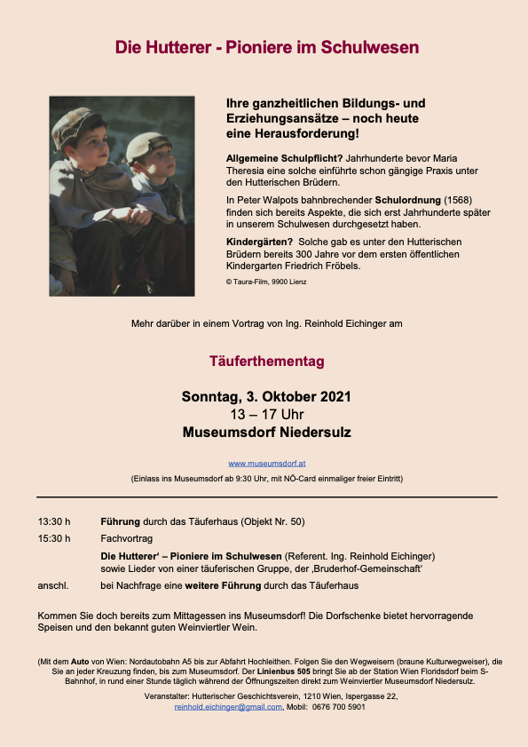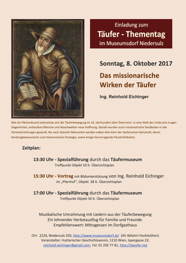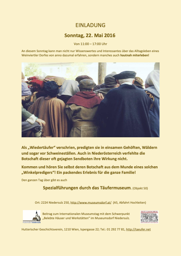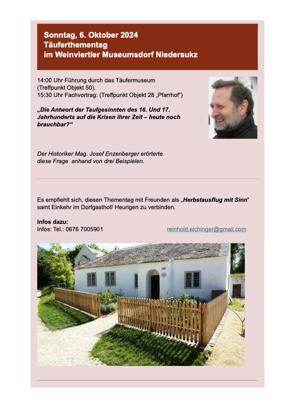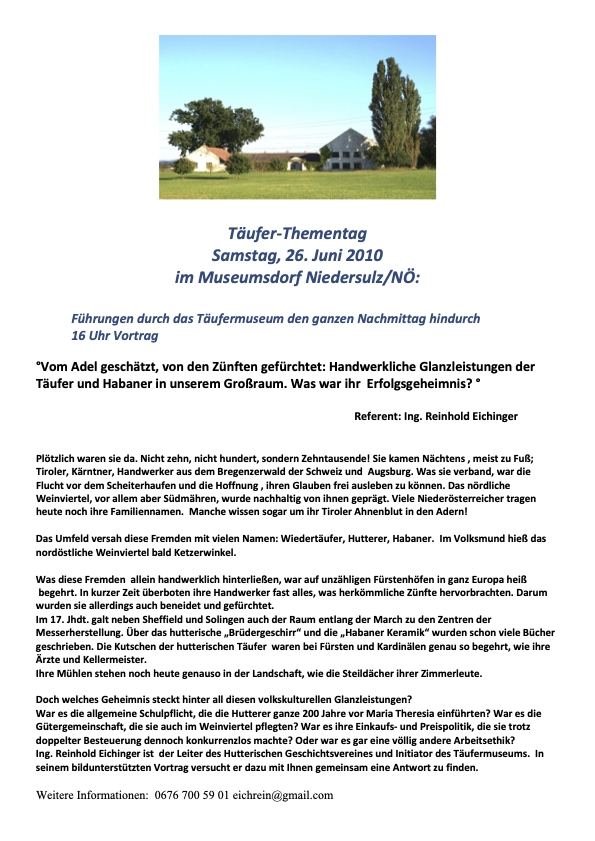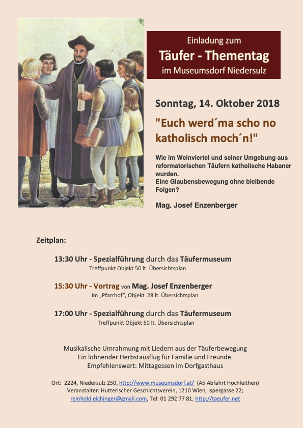 Österreich und nicht zuletzt das Weinviertel spielten dabei eine bedeutsame Rolle. Grausame Verfolgungen trafen insbesondere die Hutterer. Interessante Einzelschicksale werden näher beleuchtet.